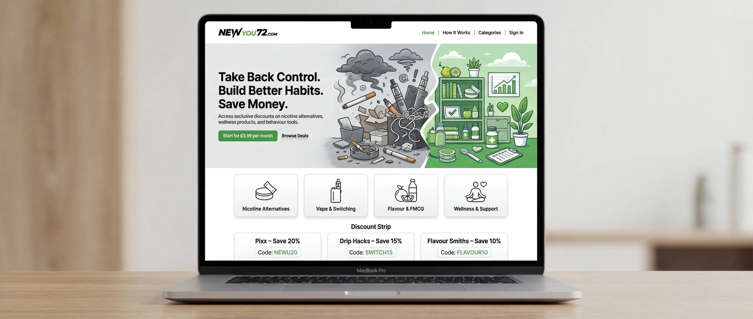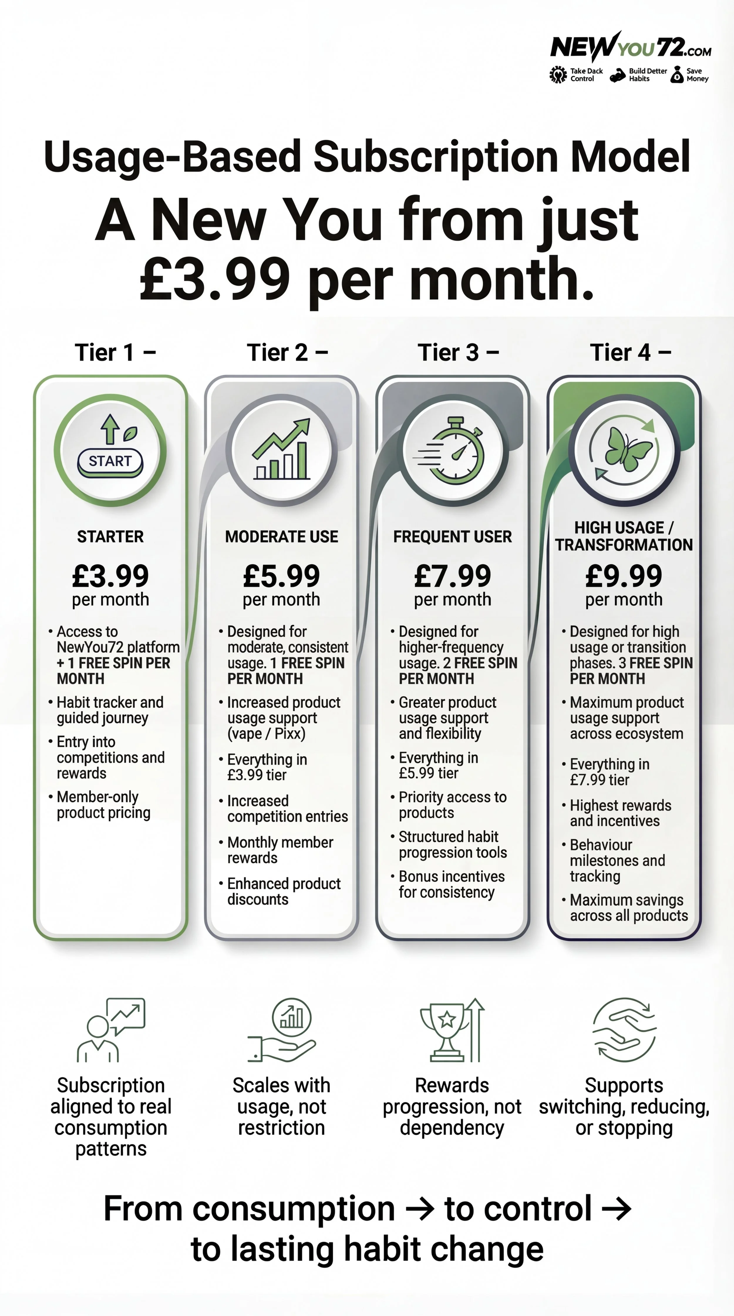 6–7 million UK smokers and vapers cycling between consumption, reduction, and relapse, with expansion into broader wellness and habit-change markets.
